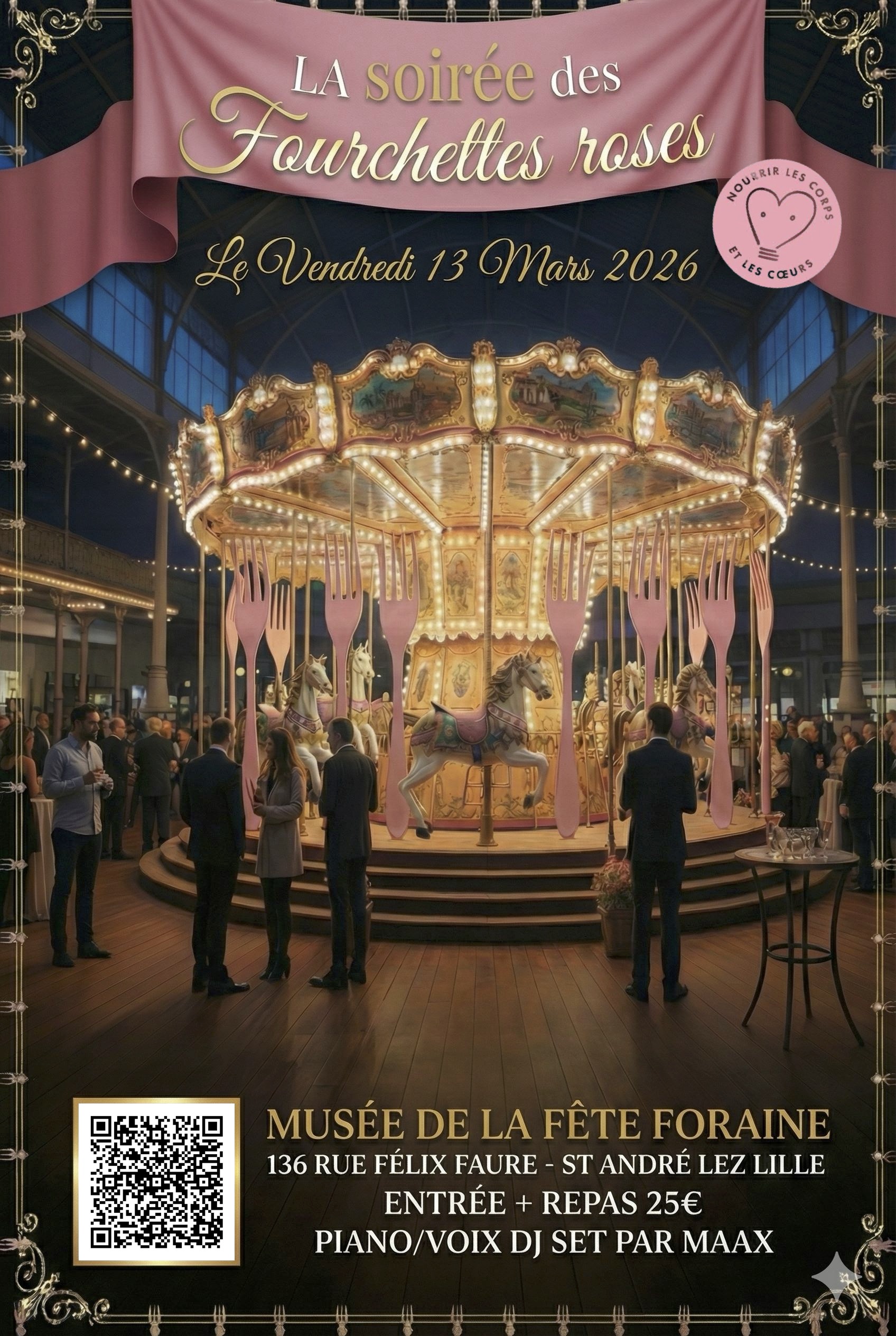 Venez participer à notre soirée solidaire qui aura lieu au Musée de la Fête Foraine à Saint-André-Lez-Lille le vendredi 13 mars 2026.